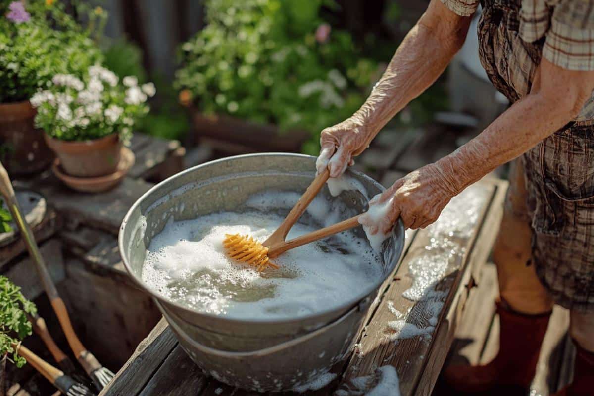 | 🧼 Savon noir comme solution principale | Diluer 5 cuillères dans 10 litres d’eau tiède |